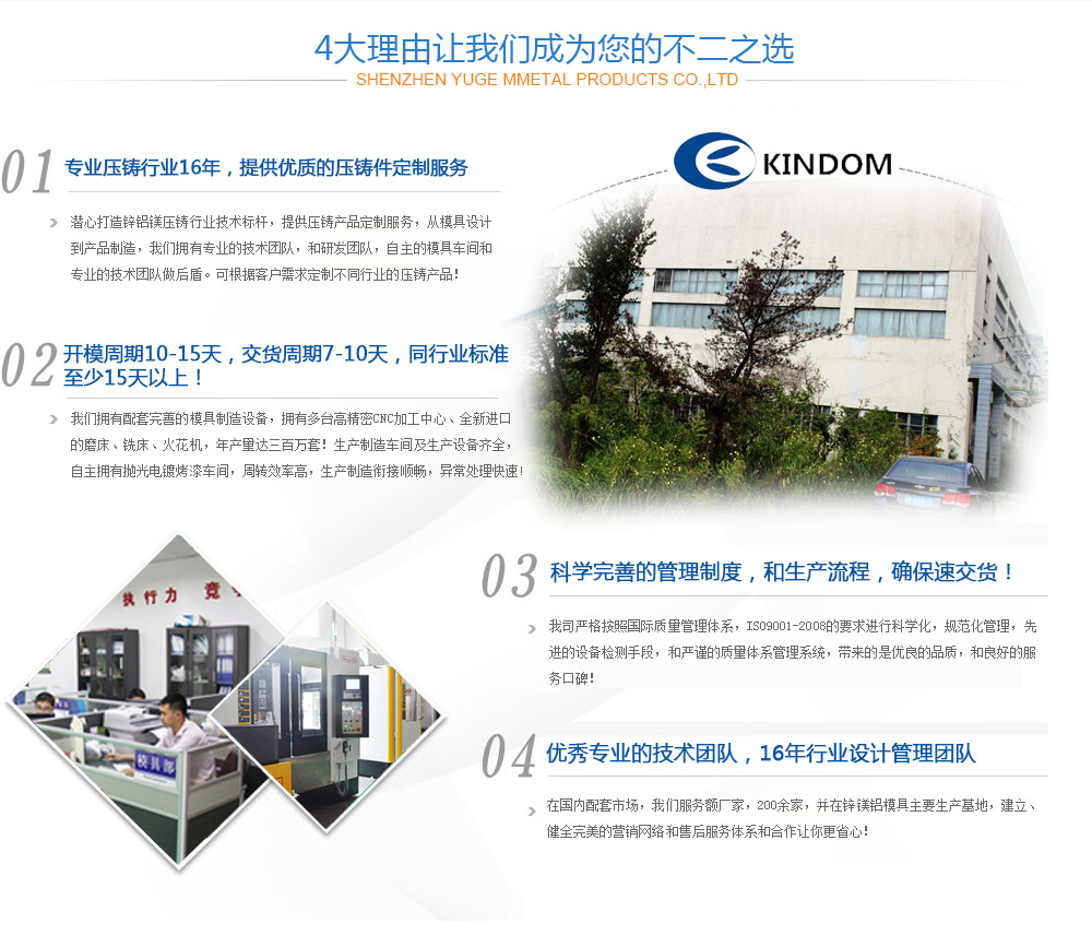 海寧長命摩擦材料有限公司,創(chuàng)建于2002年,是一家集模具設(shè)計、制造、鋁合金、鋅合金壓鑄、沖壓加工、表面處理為一體的專業(yè)制造公司,為汽車、摩托車、沙灘車、燈具、網(wǎng)絡(luò)天線、監(jiān)控設(shè)備等行業(yè)提供精密壓鑄件及精密沖壓件。